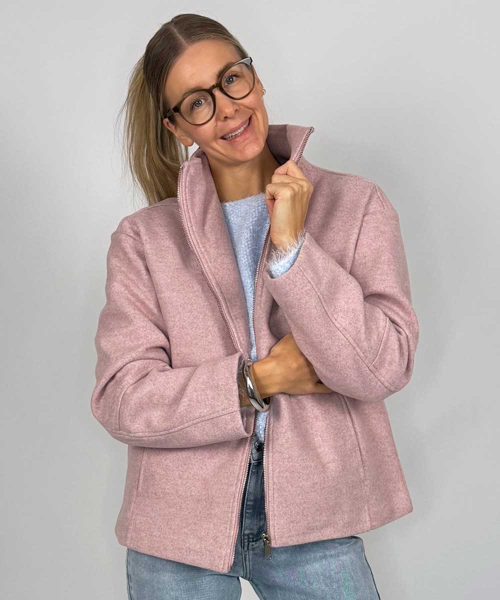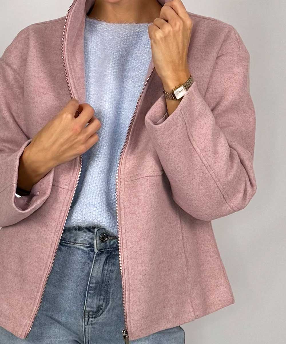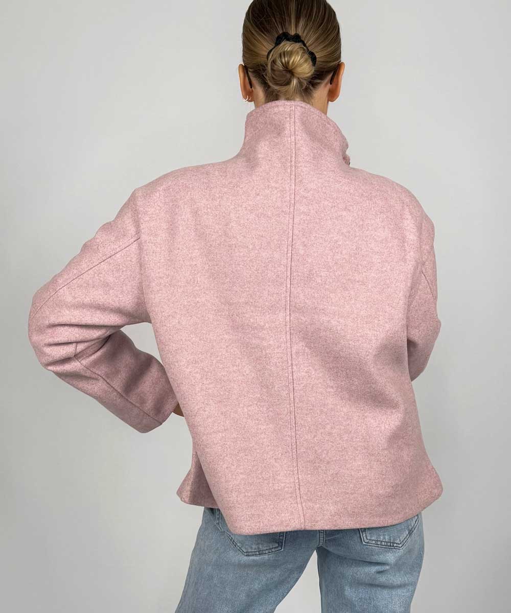 Härlig jacka i mjukt material från Chica London. Jackan har hög krage, dragkedja framtill , fickor i sidan och en rak enkel passform. Fina dekorativa sömmar.