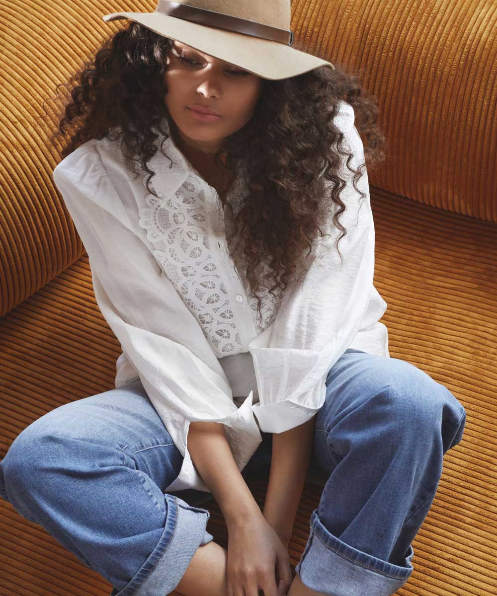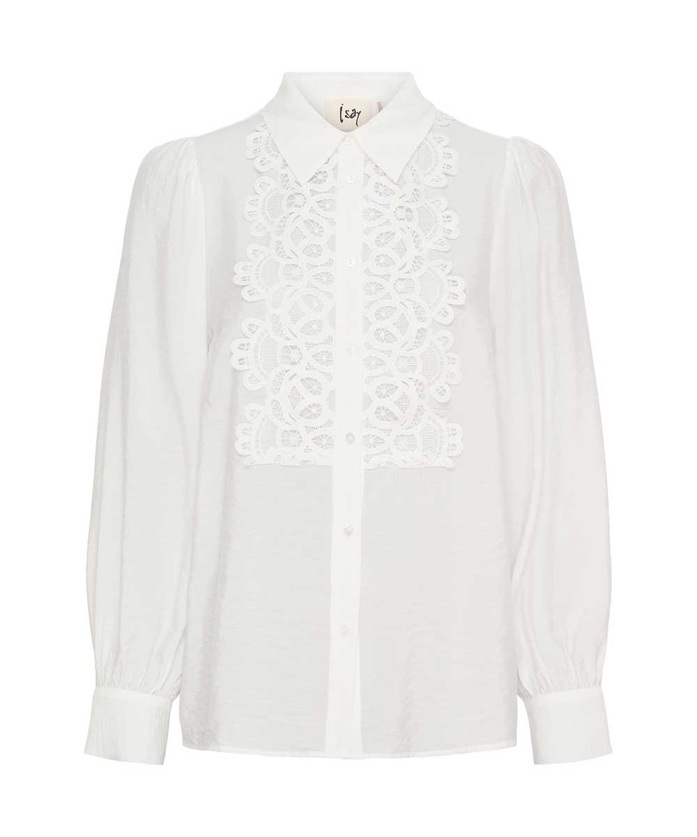 Lotus blus är en elegant skjortblus från Isay som kombinerar klassisk stil med feminina detaljer. Blusen har en klassisk skjortkrage och knappar framtill och ett fint broderat parti över bröstet. Normal passform.