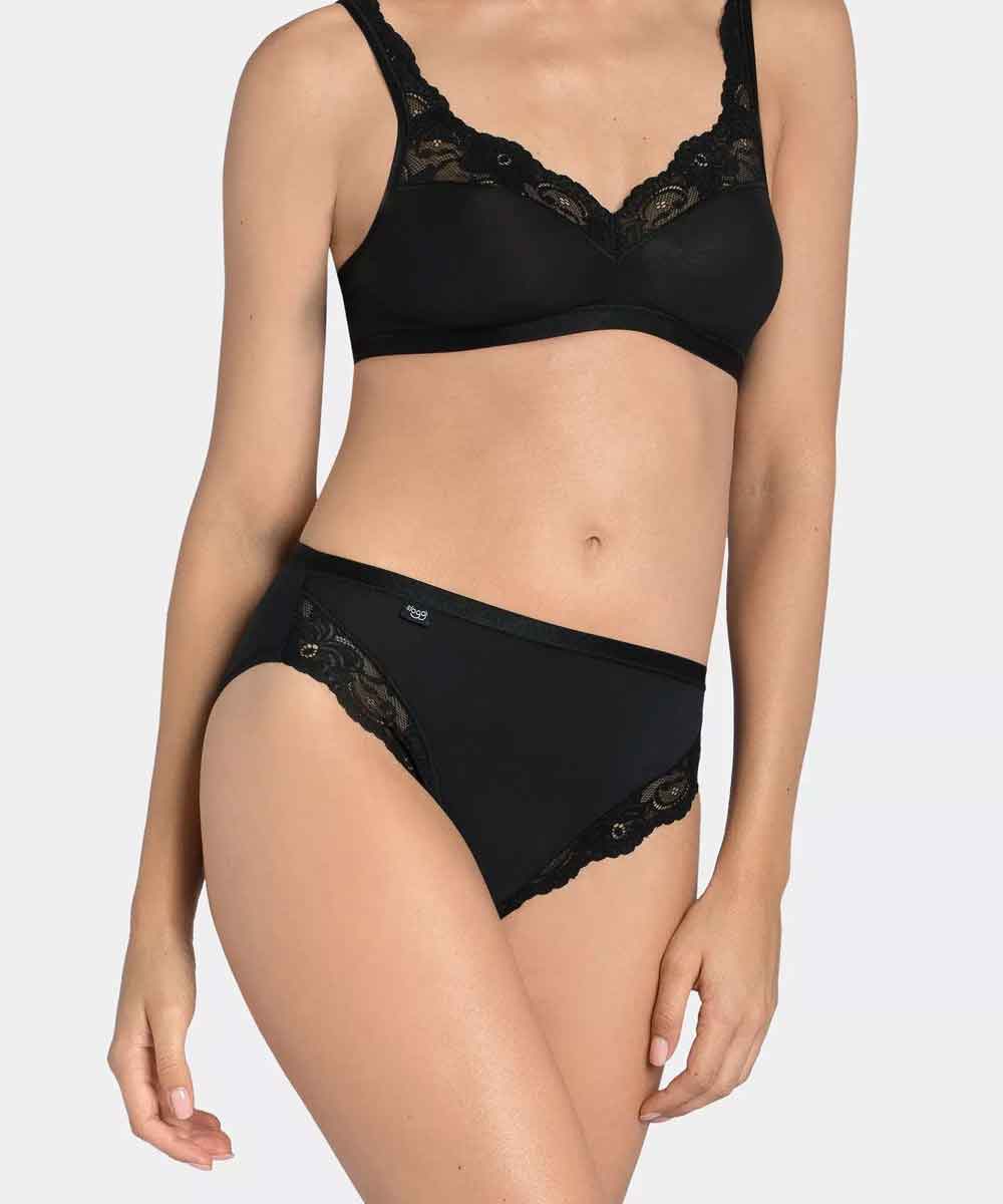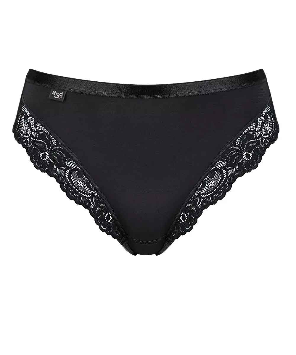 Romance Tai-trosor från Sloggi är tillverkade av den finaste Supima®-bomullen för total komfort och skimrande mikrofiber. Höga benöppningar med fin spets ger en feminin touch.