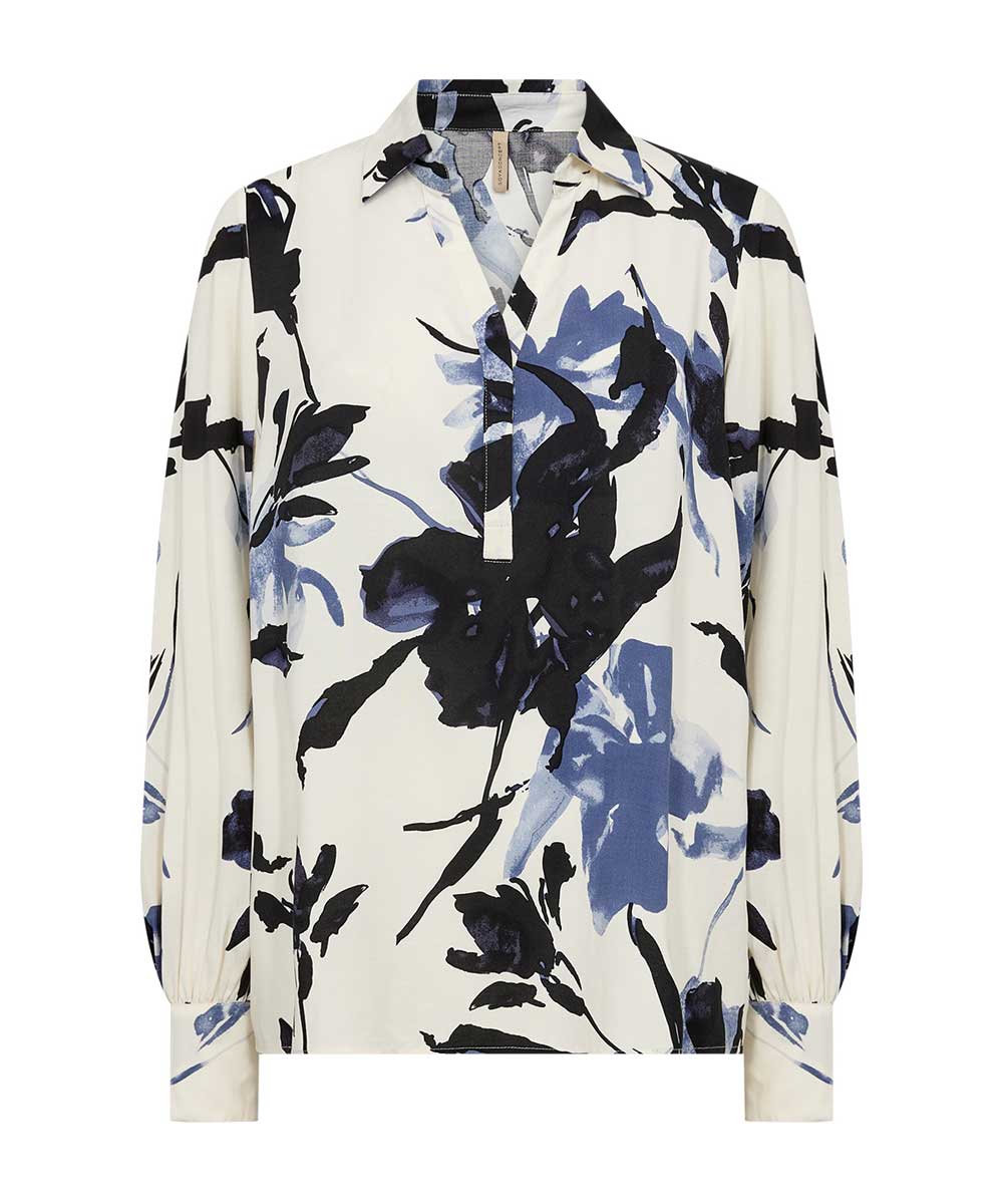 BENE 2 är en fin blus från Soyaconcept. Denna eleganta blus har en klassisk skjortkrage, v-ringad hals med knappslå upptill och ett vackert blommigt tryck. Styla den med skräddarsydda byxor för en elegant look eller jeans för en avslappnad outfit.
