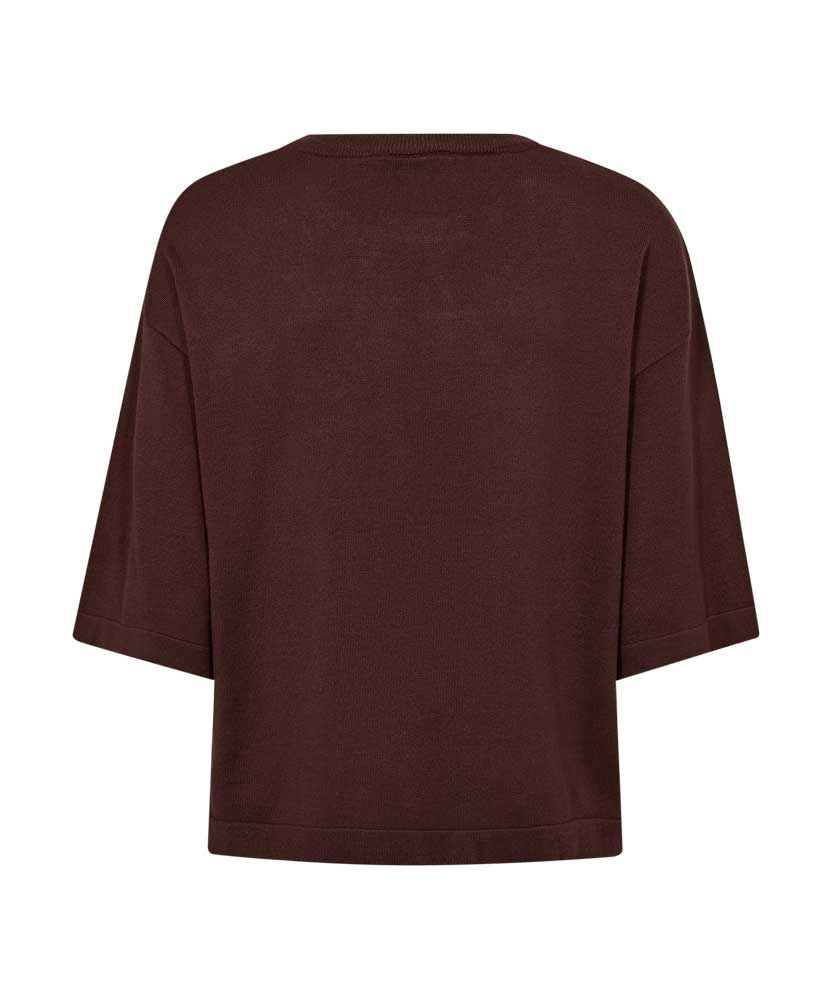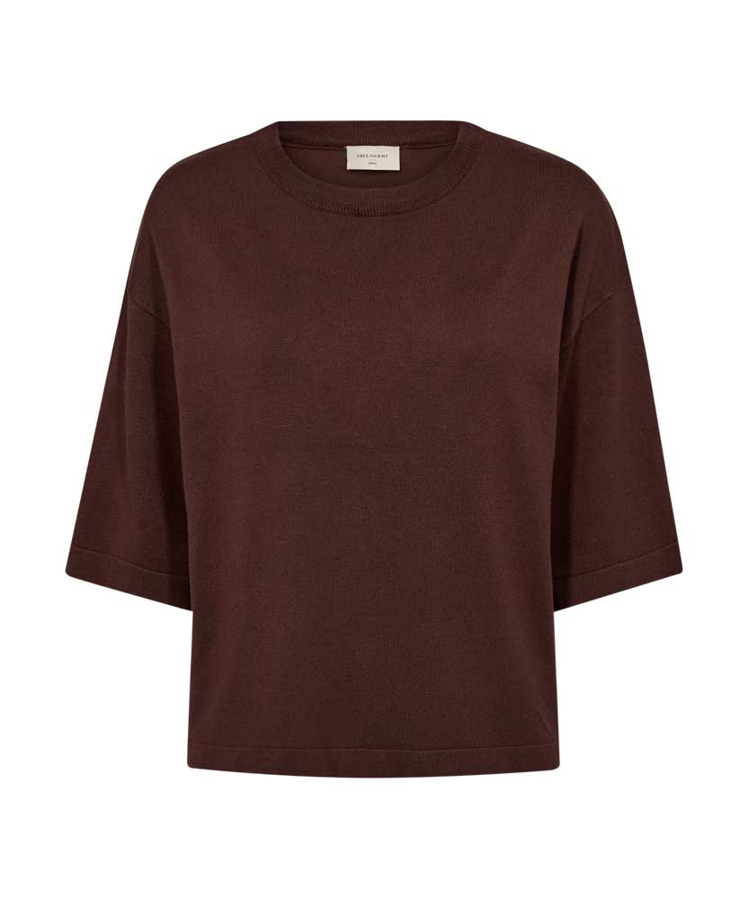 Conny är en finstickad tröja från Freequent. Tröjan har en rundad halsringning med ribbstickning och korta ärmar med nedsänkta axlar och en lös skön passform.