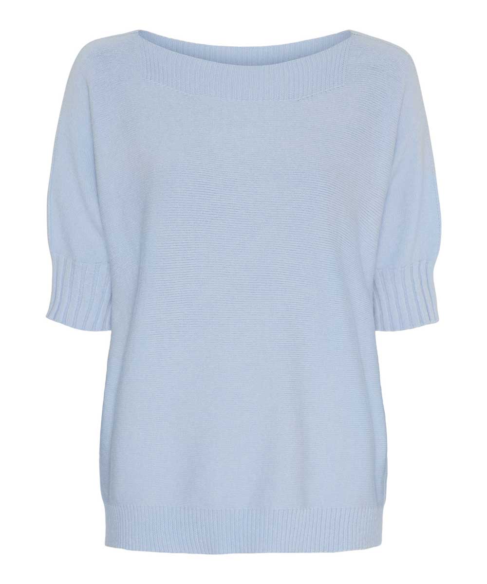 Costanza är en elegant och tidlös stickad tröja från Marta du Château. Tröjan är onesize modell och har en ledig passform. Rund båtringning, korta ärmar med bred mudd och bred mudd nertill.