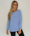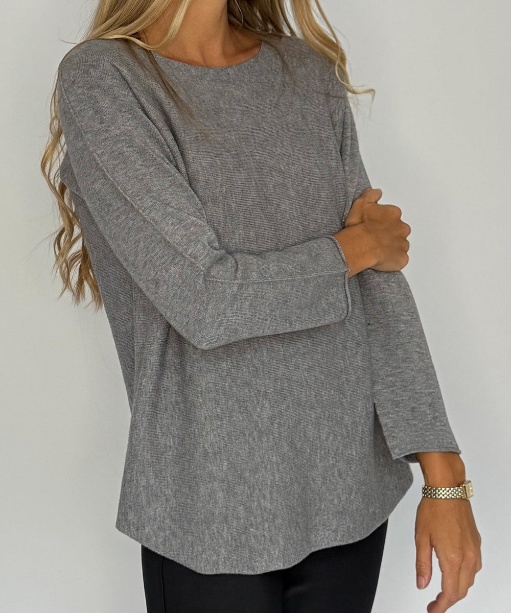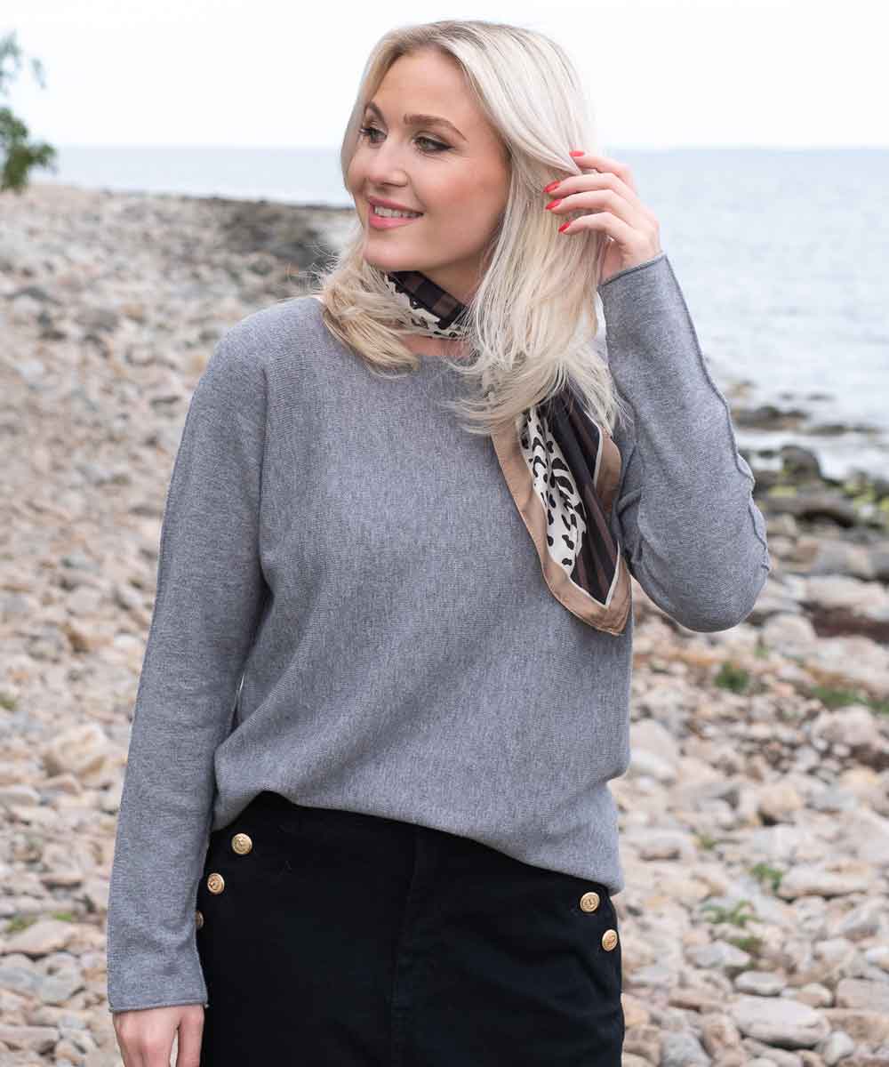 Zoe är en mjuk och skön stickad tröja från Ezence. Tröjan har rund halsringning, långa ärmar och en rak enkel siluett.