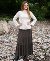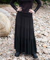 Boho volangkjol är en härlig kjol med mycket vidd i mjukt och skönt material från Ezence. Kjolen har bred smockad resår i midjan och volanger nertill. En mycket användbar kjol som även kan användas som en tubklänning.