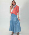 Jean volangkjol är en härlig kjol med denimlook från Ezence. Kjolen har bred smock i midjan och mycket vidd i kjolen. En mycket bekväm kjol som är snygg att styla till både stickat eller en t-shirt.