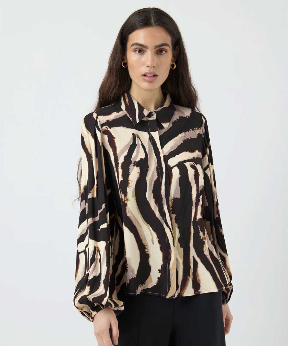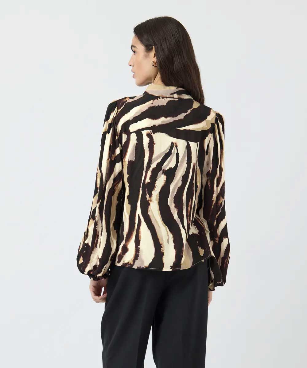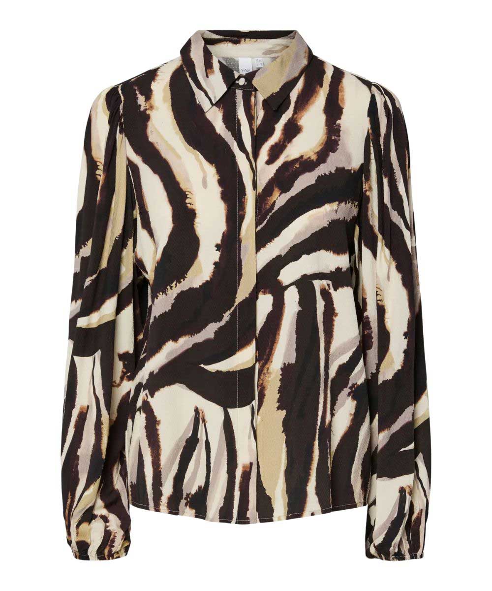 Asina är en blus i härligt viskostyg från YAS. Blusen har krage, dold knäppning framtill, långa ärmar och en rak enkel passform. Den perfekta blusen i höst som passar till både jeans och kjol, vardag och fest.