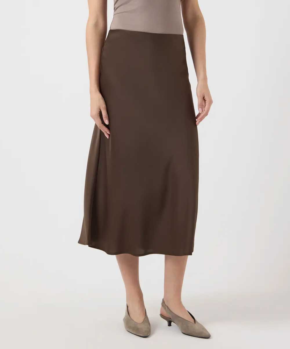 Pella är en vacker satinkjol i midilängd från YAS. Kjolen har hög midja med skön resår och en rak enkel siluett. Normal passform. Fin att styla till en blus i samma material.
