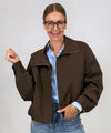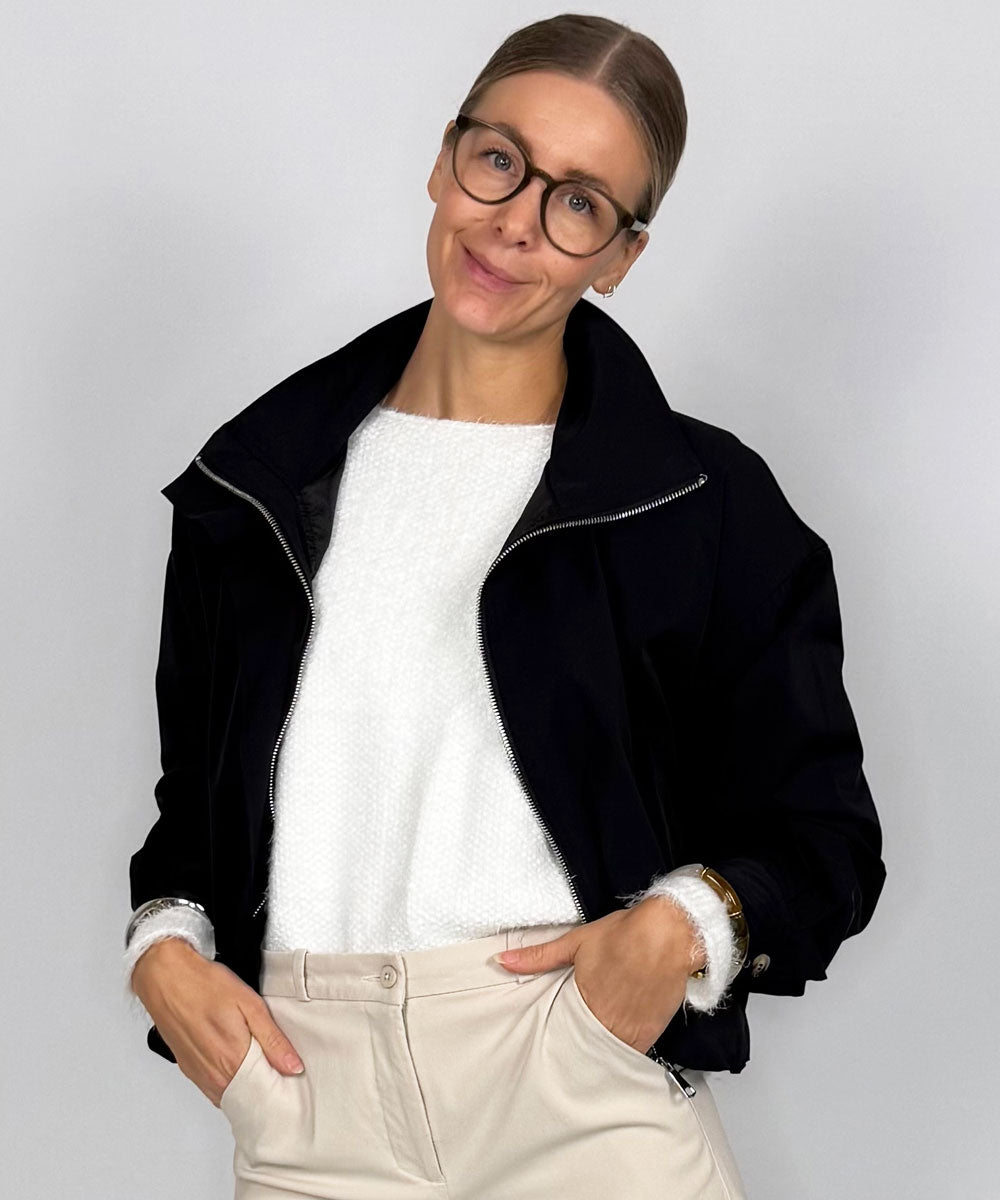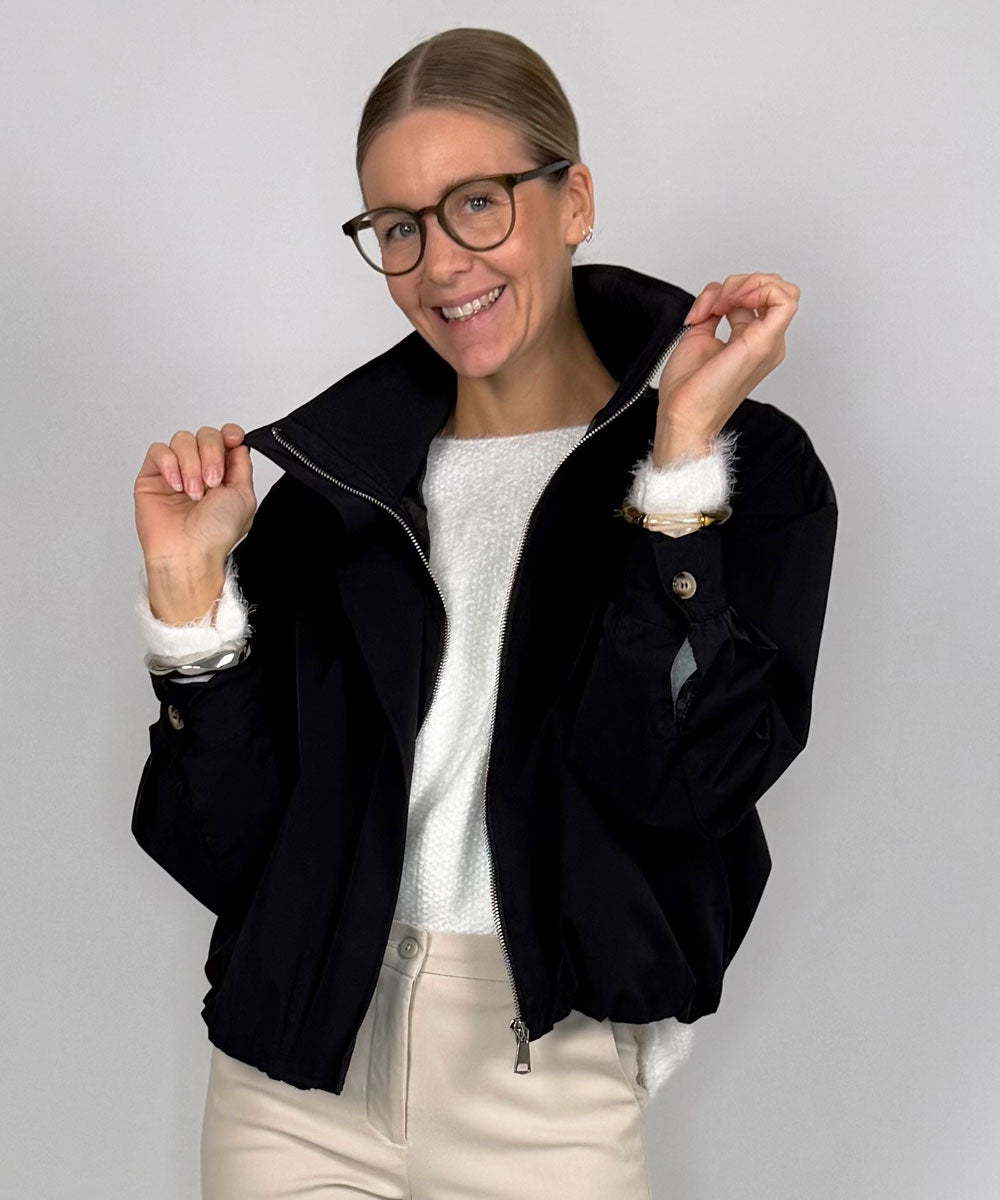 Blanka är en snygg jacka i bomberstil från Ezence. Jackan har en hög krage, dragkedja framtill, fickor i sidorna och långa ärmar med knapp vid ärmsluten.