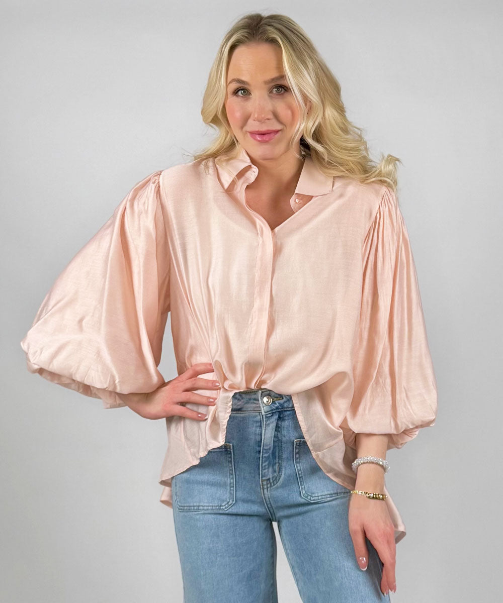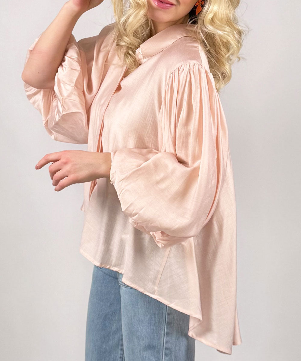 Ballon är en härlig blus i rosa från Chica London. Blusen har krage, knappar framtill, halvlånga vida ballongärmar, något längre bakstycke och en lös avslappnad passform. Blusen kommer i storlek onesize.
