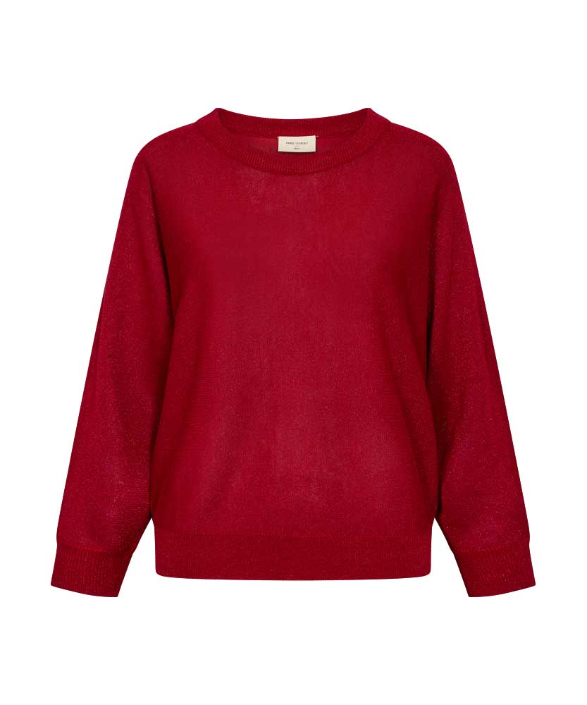Betty är en finstickad glittrig tröja från Freequent. Tröjan har rund halsringing, långa ärmar, ribbade muddar och en normal passform. Superfin tröja till både kjol och byxor och passar perfekt på vinterns fester.
