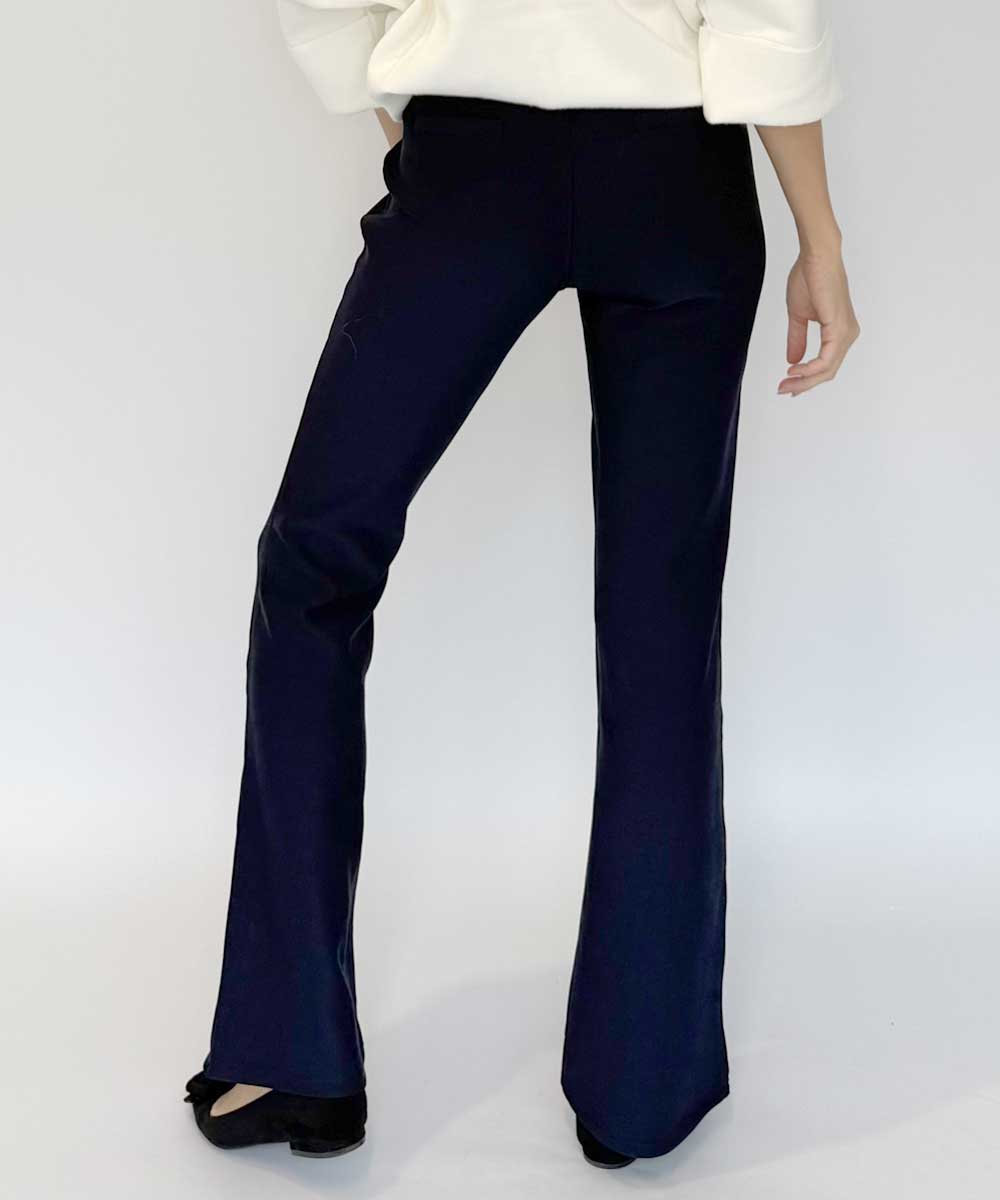 Superhärlig stretch byxa från Chica London. Byxorna här en dra-på-modell med fickor fram, hellånga utsvängda ben och ett fint guldspänne i midjan.