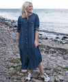 Mjuk och luftig jeansklänning från Ezence. Lika snygg att bära som den är som över en topp och till ljusa byxor. Klänningen har bekväma fickor i sidsömmen, krage, knappar fram och bröstfickor.
