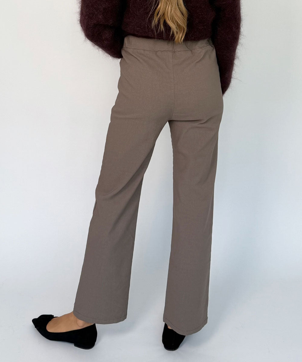 Byxa i superskön stretch från Chica London. Byxorna har en rak passform med lätt utställda benslut och skön resår med knytband i midjan. Otroligt bekväma byxor som lätt blir en favorit i garderoben. Styla dom till en skön stickad tröja eller blus för en snygg vardagslook.