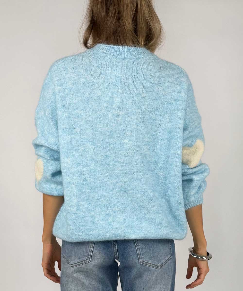 HEARTS Stickad Tröja - Ljusblå