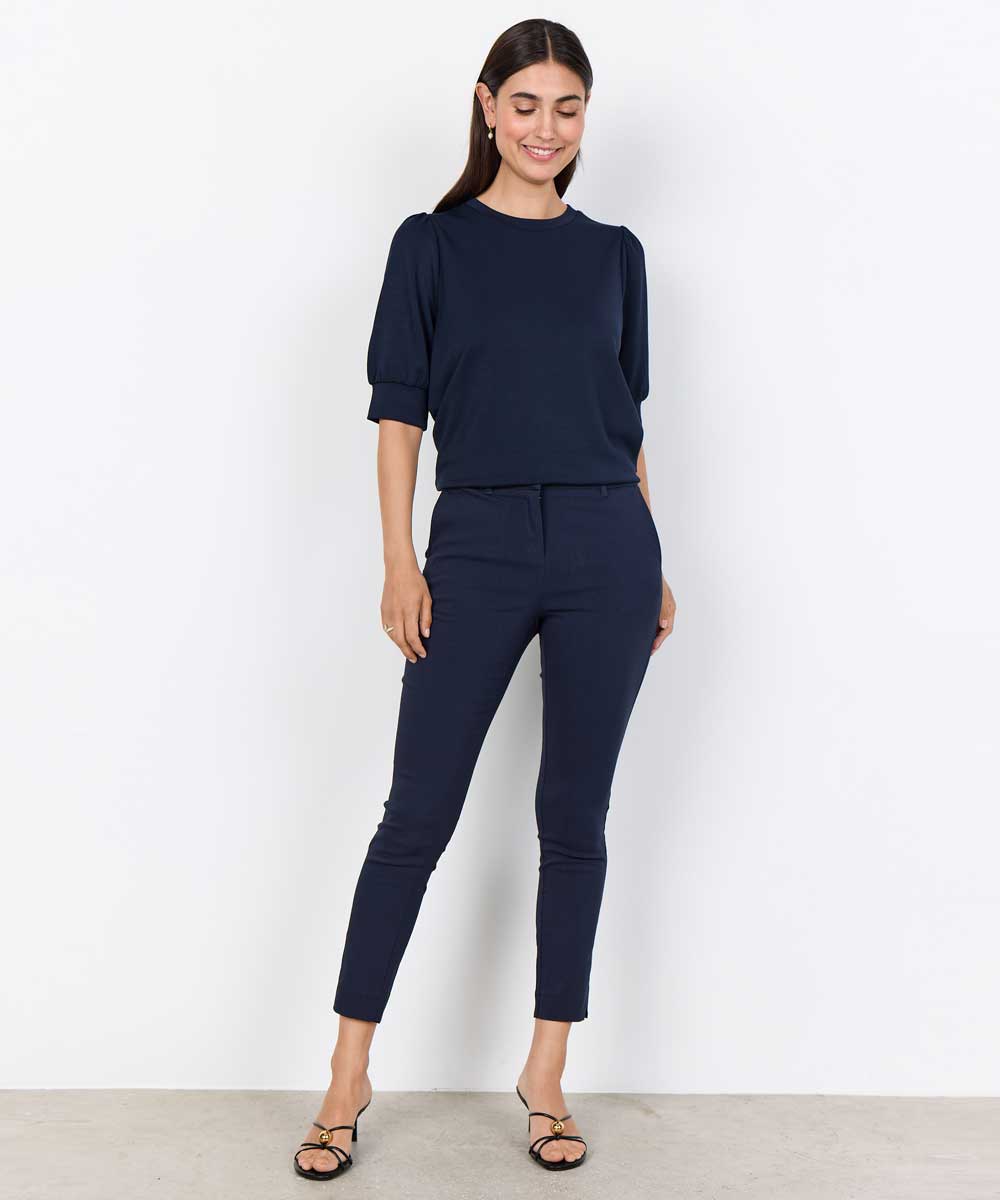 Lilly är otroligt skön byxa från Soyaconcept. Byxorna har mycket stretch, krokstängning, sidofickor och fickdetaljer baktill. Smal passform och liten sprund nedtill.