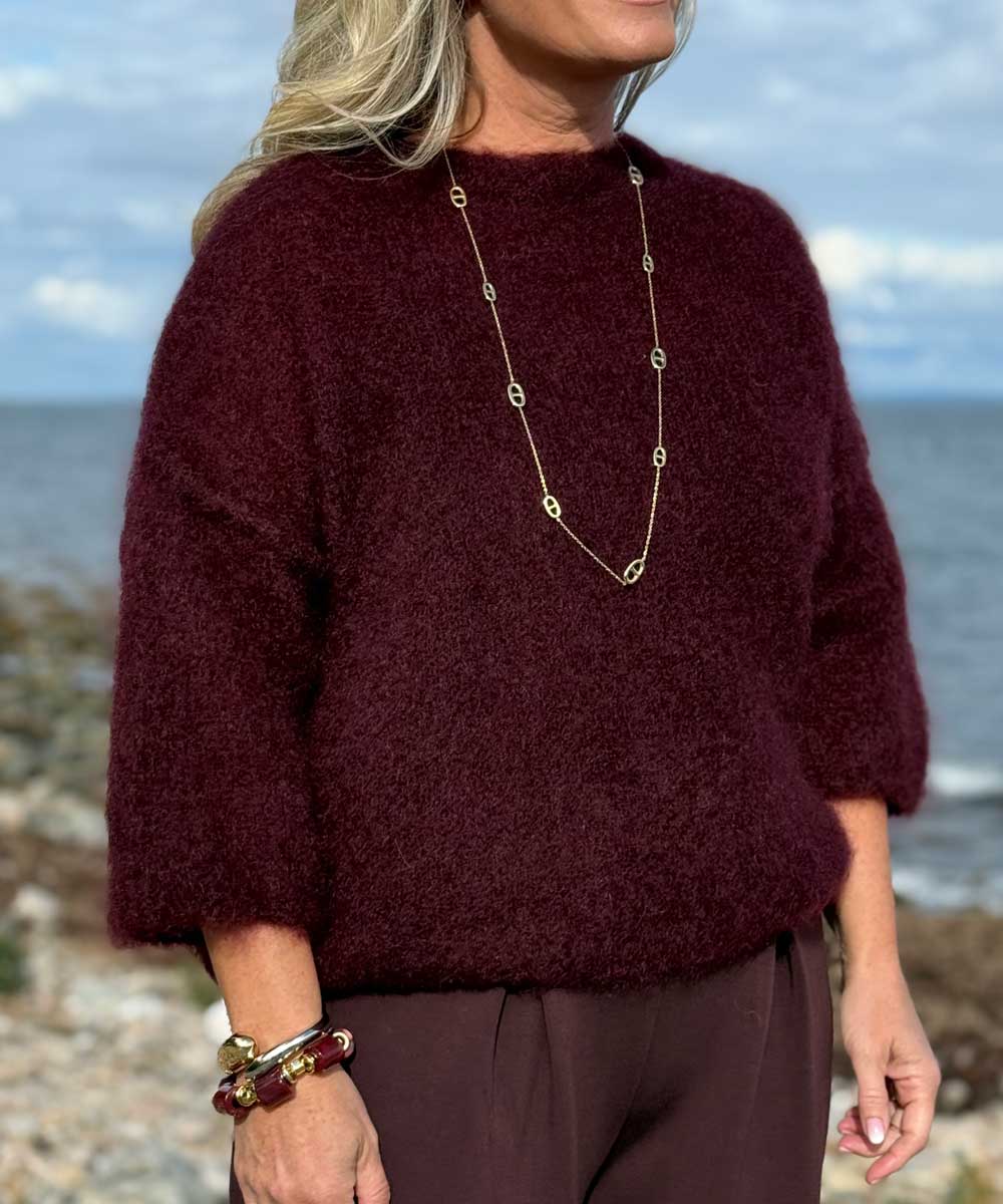 MOHAIR Stickad Tröja - Vinröd