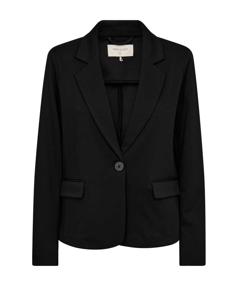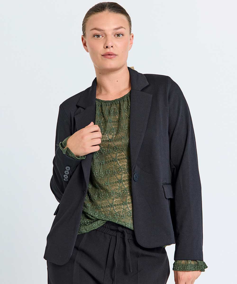 Nanni kavajen i ny modell från Freequent. Kavajen har en mjukt skönt jerserymaterial och kort siluett. Klassisk kavajdesign med en knapp framtill och knappar vid ärmsluten, hellånga ärmar och fickor framtill.