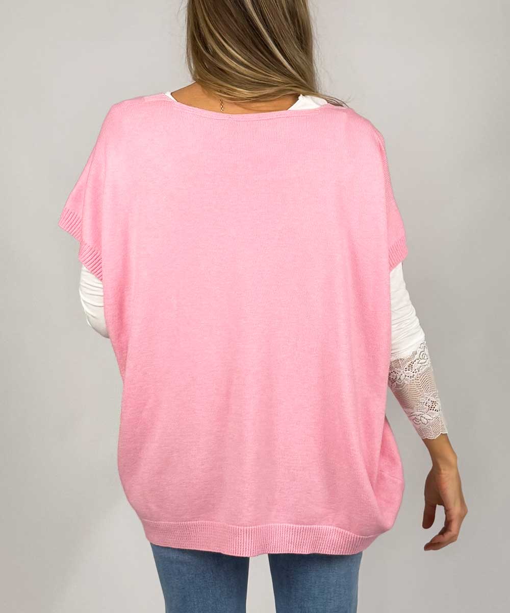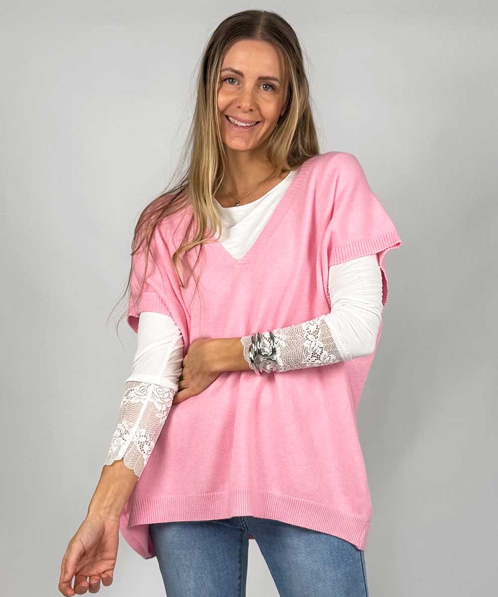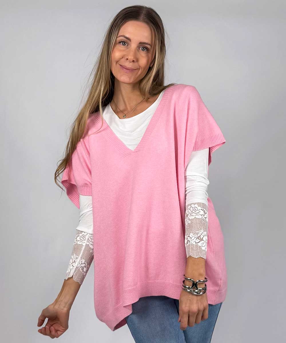 Vicki är en finstickad oversize väst från Chica London. Västen har v-ringad hals och en vid lös passform. Fina ribbade detaljer längs halsringning, ärmslut och nertill.