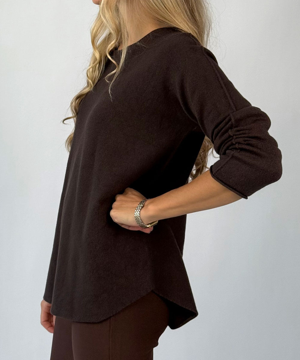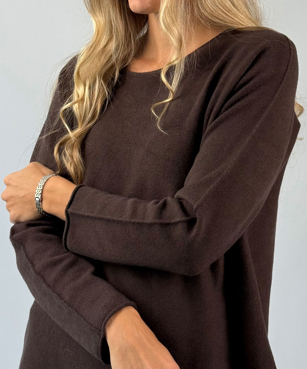 Zoe är en mjuk och skön stickad tröja från Ezence. Tröjan har rund halsringning, långa ärmar och en rak enkel siluett.